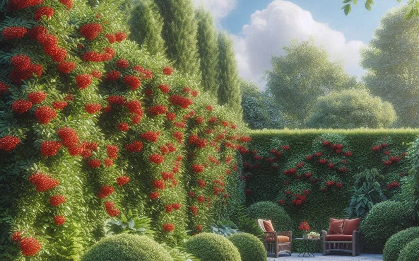 Holly bushes provide year-round privacy with the added benefit of bright red berries, which attract birds and wildlife. Their dense, spiky leaves also offer extra security.