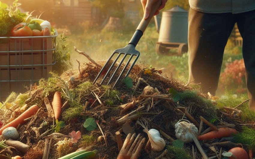 Turning the pile: To speed up the decomposition process, turn the pile every few weeks using a compost aerator or a pitchfork. This helps introduce oxygen, which is essential for aerobic decomposition.