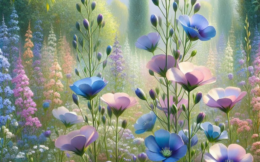 - Naturalistic Effect: Flax is a quintessential plant for meadow gardens and wildflower mixes. When planted in drifts, its slender stems and dancing blue flowers create a natural, airy, and truly captivating scene.