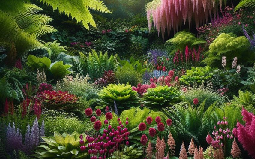 - Texture: Combine bold (large-leaf hostas, Ligularia) with fine and delicate (Maidenhair fern, Astilbe foliage).