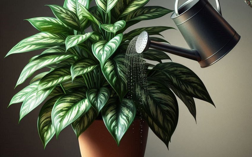 Watering your Dumb Cane plant correctly involves more than just pouring water into the pot. It’s about ensuring the plant gets a thorough drink without staying too wet, promoting healthy root development.