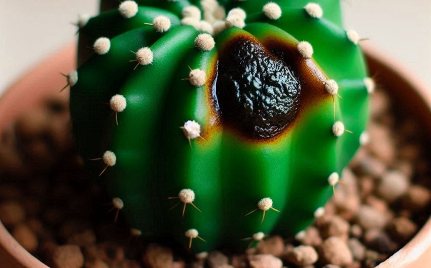 - Stem Rot: Look for any dark, soft, or spongy areas on the base of the cactus stem. The rot might have moved upwards into the main body of the cactus.