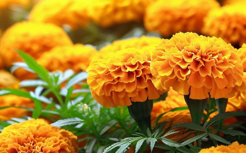 Marigolds are sun-loving plants that thrive in warm conditions and require consistent moisture, especially when getting established.